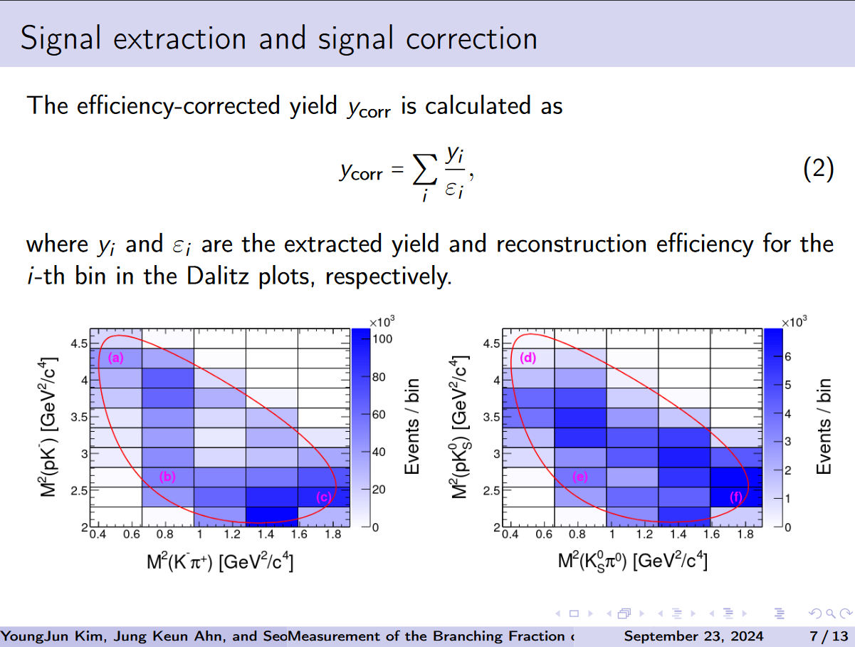 На семинаре МЛФЭЧ 12 марта 2025 года студентка 5-го курса МФТИ Нарваткина Анна представила результаты работы по измерению параметров смешивания нейтральных D-мезонов в экспериментах Belle/Belle II. Были представлены распределения разности массы комбинаций D0anti-D0X или D0D0X и энергии в системе центра масс на данных Belle в сигнальной области и оценка источников фона из контрольных областей. Также были представлены оценки числа сигнальных событий во всех комбинациях. В конце семинара обсуждались способы уменьшения вклада от фоновых событий и способ более точного определения количества сигнальных событий.
